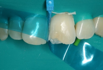 - Si el contacto después de la preparación no está totalmente interrumpido, puede introducir la banda con ayuda de las extensiones de colocación, tal como si lo hiciera con un hilo dental en los espacios interdentales.