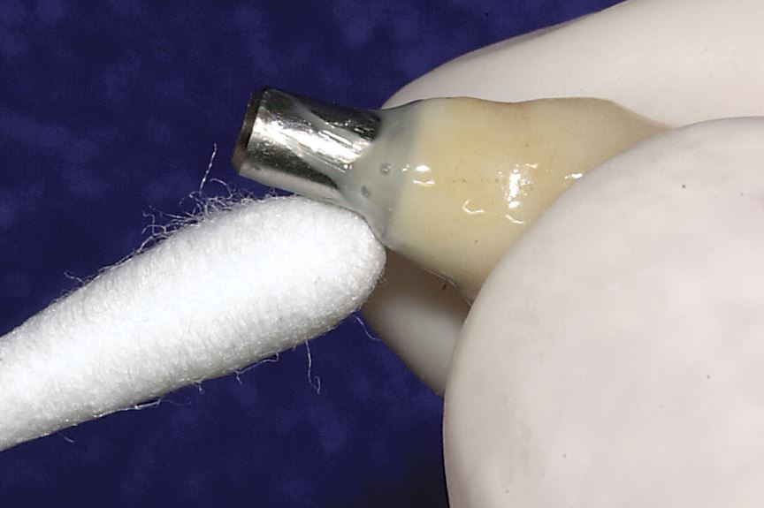 El pilar Bicon no necesita tornillos para su conexión con el implante, es macizo. Enviando el pilar al laboratorio, este puede aplicar el composite de poli cerámica directamente sobre el pilar y enviarnos a la clínica la pieza completa.